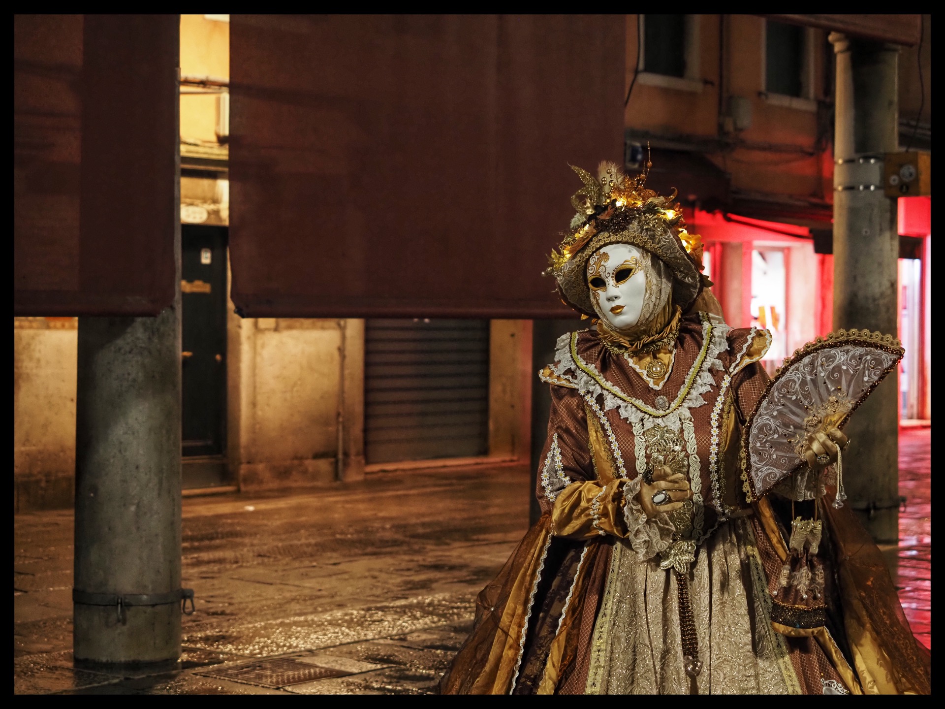 Anschließend schaute ich natürlich nochmal am Markusplatz und der Promenade vorbei, wo sich wieder die Fotografen um die Verkleideten sammelten, die in ihren Blitzlichtern versanken. Das war mir alles zu viel, sodass ich mir ruhige Szenen und Momente suchte.