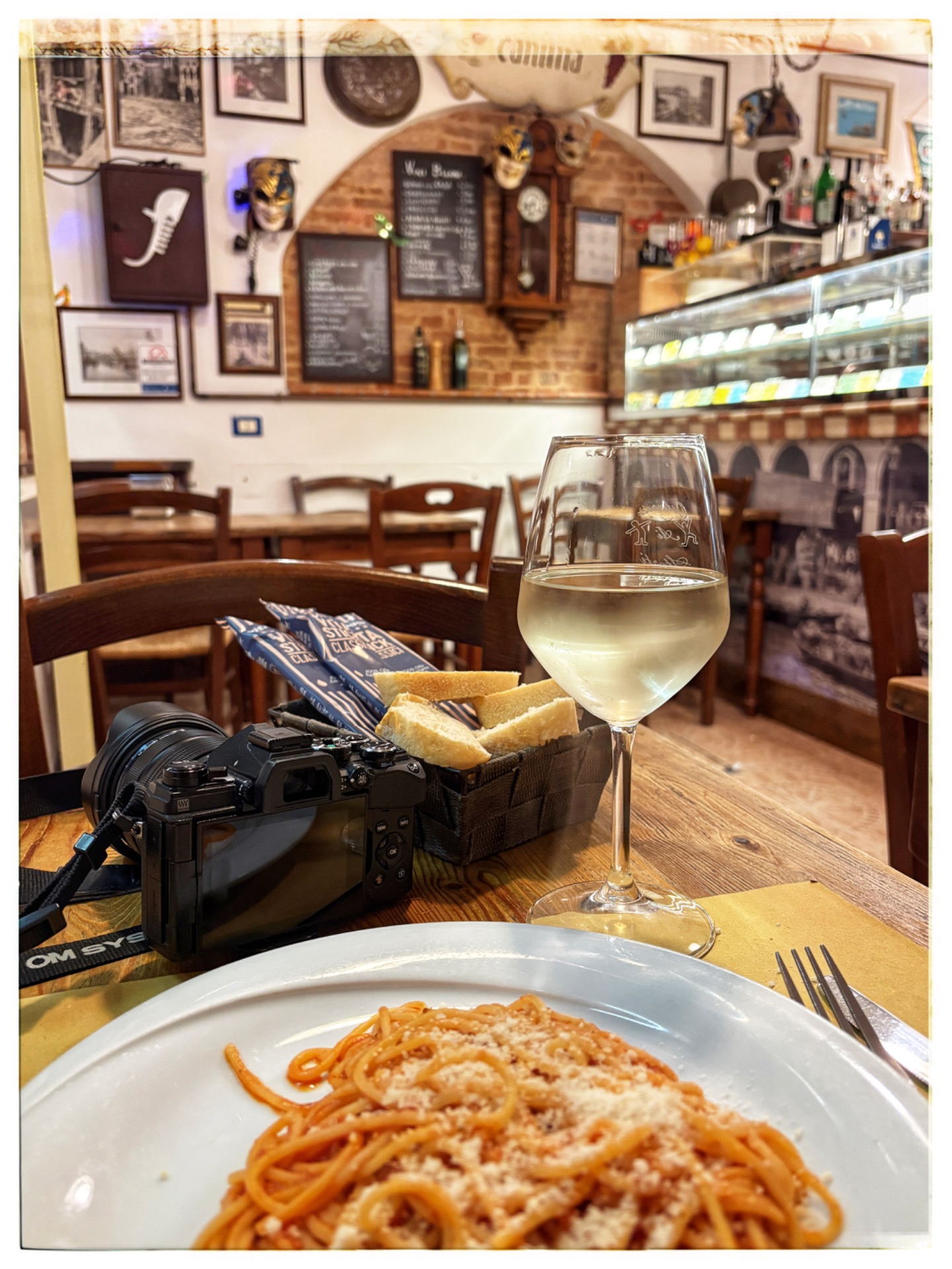 Für mein Abendessen suchte ich eine Weile, bis ich ein kleines, günstige Restaurant in "San Polo" fand. Denn ich fand immer wieder Restaurants die zwei Karten hatten. Einmal für Einheimische und eine für Touristen. Da war das Essen gleich mal 2-3 Euro teurer. Auch heute machte ich alle Wege zu Fuß und hatte am Ende 26.000 Schritte in der Anzeige. Ich bevorzuge das Laufen, denn dann entdeckt man einfach mehr.