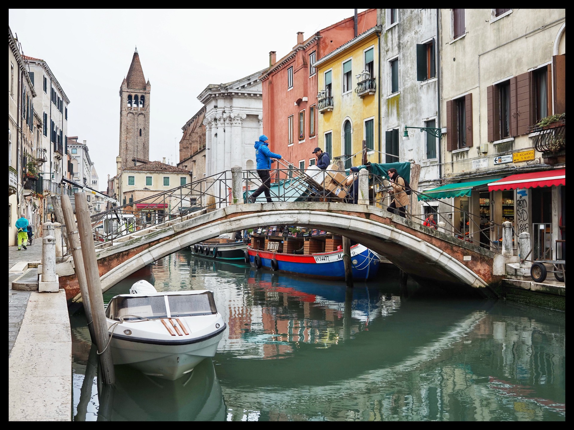 Anschließend spazierte ich noch zur Brücke "Ponte dei Pugni". Dort wird aus einem Boot Obst und Gemüse verkauft. Etwas weiter wollte ich auch das "Bansky Gemälde" begutachten, doch als ich dort ankam, war es verdeckt, da es aktuell restauriert wird. Schade.