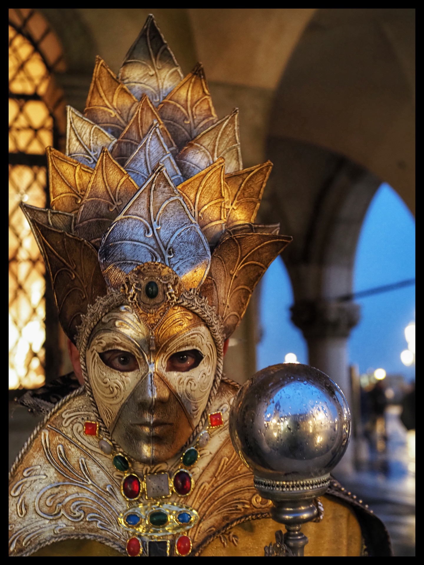 Anschließend schnappte ich meine Fotoausrüstung und machte mich auf den Weg, die Stadt etwas zu erkunden. Zuerst gelang ich nach gut zwei Minuten zum Markusplatz. Hier wimmelte es selbstverständlich von Touristen. Außerdem legte ein DJ auf und überall präsentieren sich die Verkleideten in ihren Gewändern. Es waren begehrte Fotomotive.