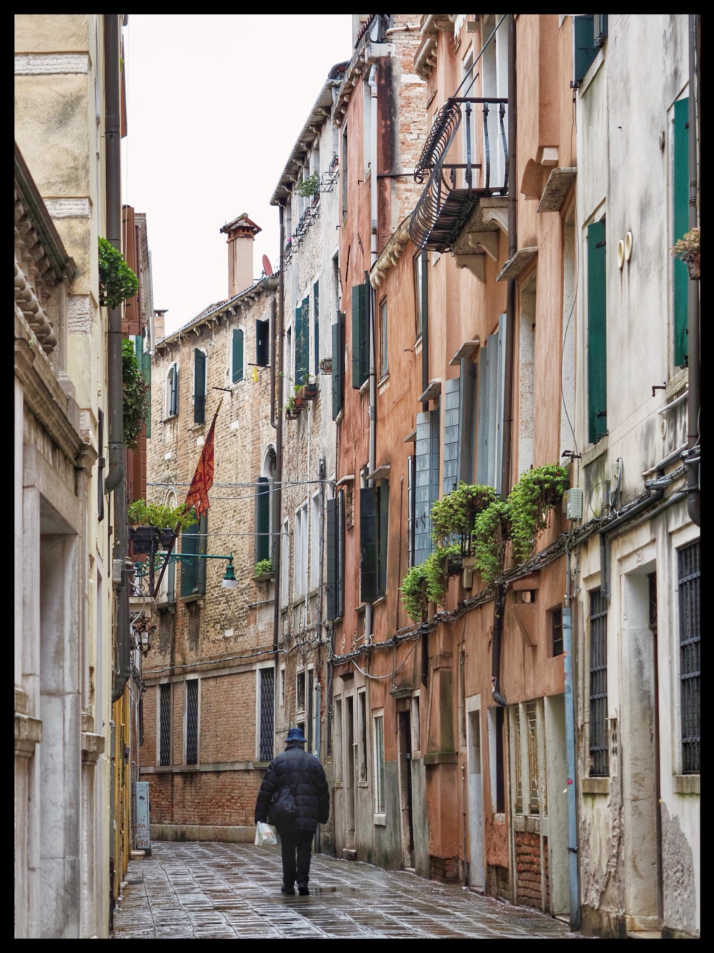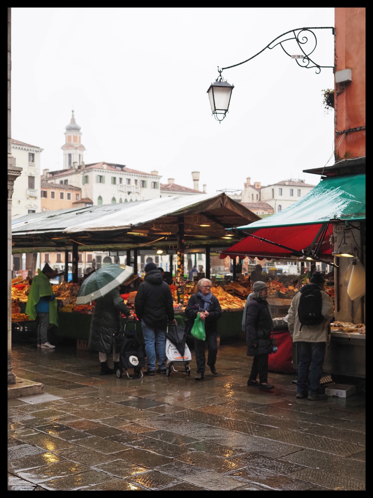 Halb durchgefroren und etwas müde kehrte ich nach der ersten Fotosession zurück ins Hotel, frühstückte und wärmte mich anschließend auf dem Zimmer etwas auf, bevor ich mich zu Fuß durch das Stadtviertel "San Polo", welches in der Mitte von Venedig liegt, aufmachte. Ich schlenderte abseits durch die Gassen. Heute schaffte ich es, auf dem Rialtomarkt vorbeizuschauen. Viel los war dort allerdings nicht. Die kleinen verwinkelten Gassen oder Plätzen waren beinahe leer, kaum Menschen zu sehen, obwohl es schon die Zeit der Touristen war.