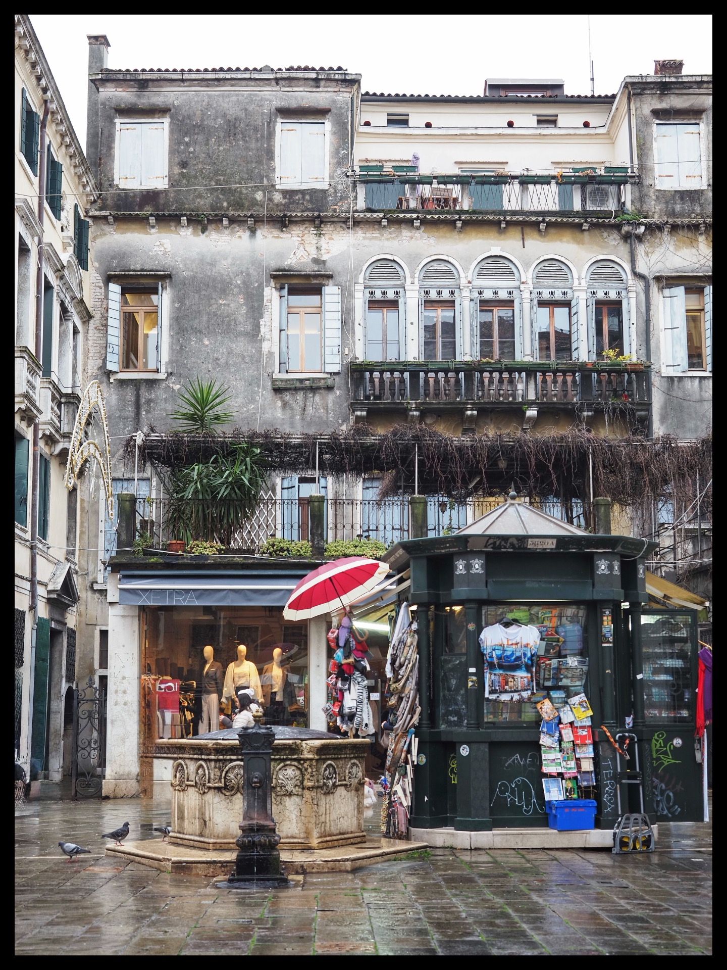 Leider begann es bald richtig stark zu regnen. Das war für mich das Zeichen, zum Frühstück ins Hotel zurückzukehren. Danach packte ich meine Sachen und checkte aus. Den Koffer ließ ich im Hotel stehen und erkundete ein letztes Mal "San Polo" sowie "San Marco". Und in beiden Stadtteilen fand ich wieder neue Ecken.