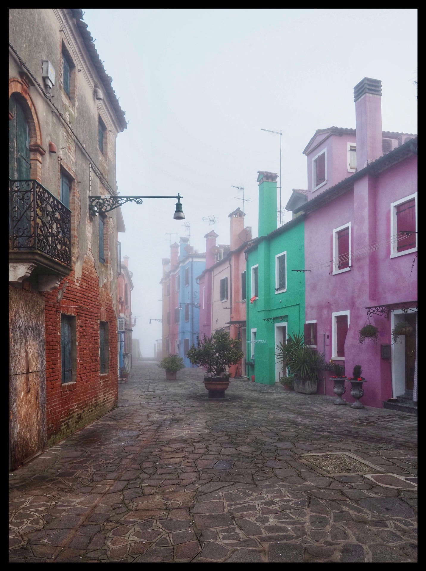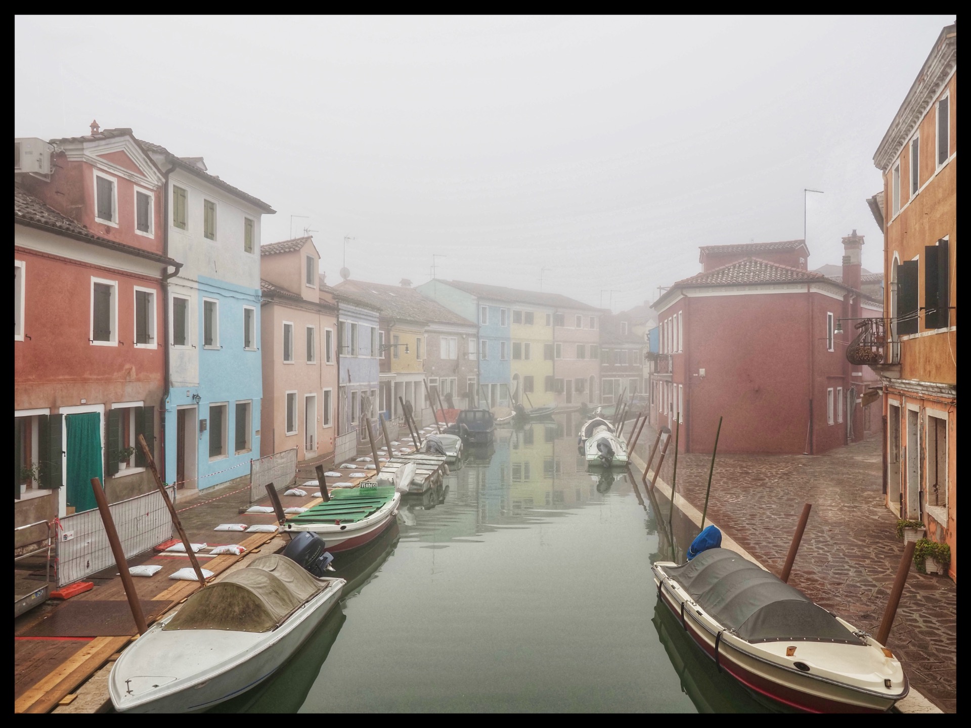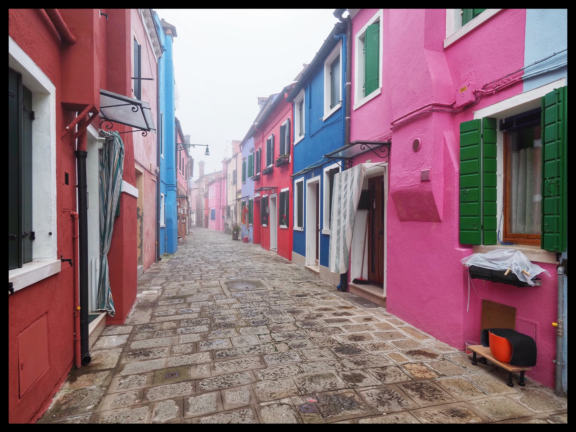Die Insel lag noch im Tiefschlaf und erwachte nur langsam. Der Nebel zog durch die Gassen und über die Lagune, sodass es richtig mystisch wirke, trotz der farbenfrohen Häuser. Bei Sonnenschein muss es hier ein Traum sein, jedoch dann wahrscheinlich auch mit Massen an Touristen.