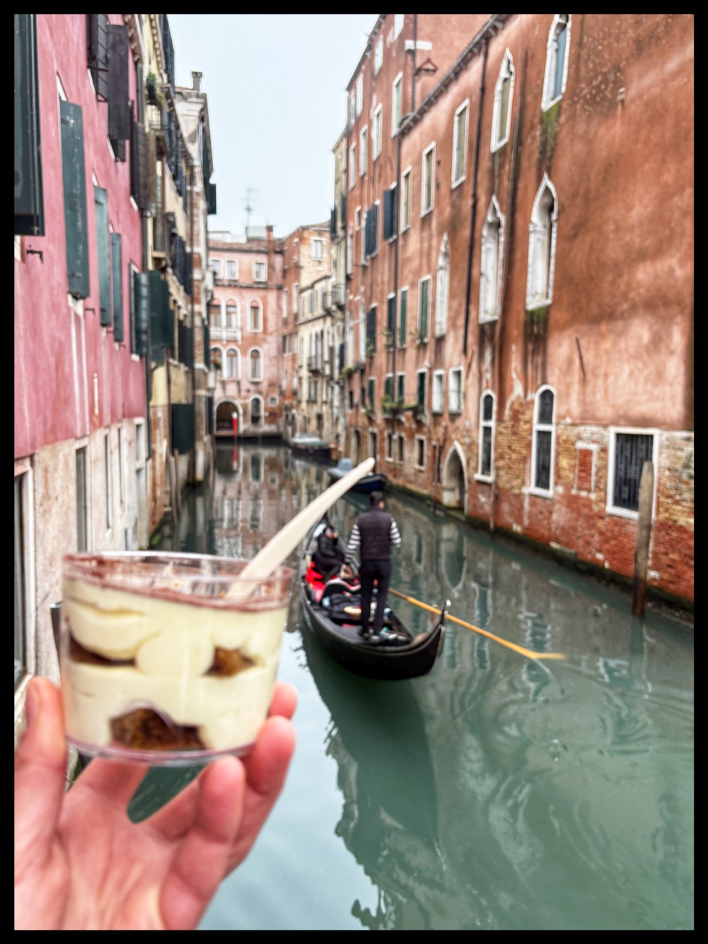 Durch "Cannaregio" und "Castello" kam ich wieder am Markusplatz vorbei. Doch hier wimmelte es inzwischen von Menschenmassen, sodass ich wieder kleine Gassen suchte und mir ein Tiramisu "to go" gönnte.