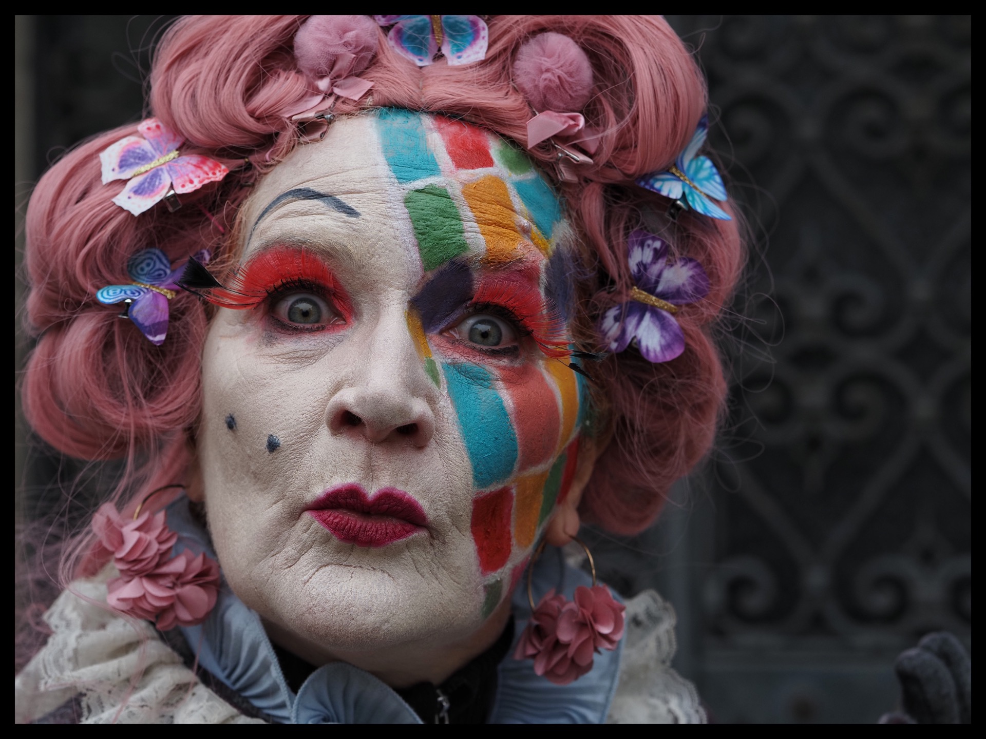 Anschließend kehrte ich zum Markusplatz und zur Promenade zurück, denn dort gab es wieder einige interessante Verkleidungen und Menschen zu fotografieren. Doch irgendwann wurde es mir zu voll und ich verließ die Gegend und schlenderte weiter ins Viertel "Castello". Dort fand ich einen weiteren Platz mit einigen verkleideten Menschen. Ich fokussierte mich dabei nur auf Portraits.
