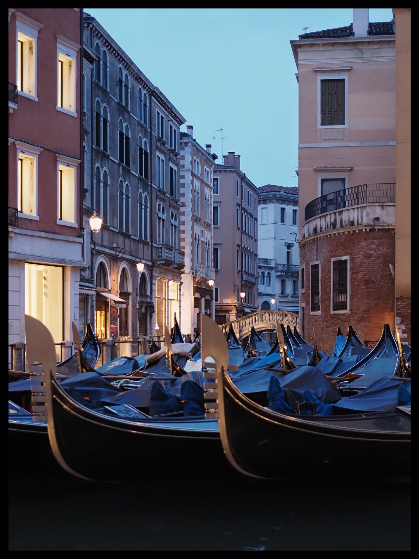 Ein letztes Mal früh aufstehen, um die morgendlicher Stimmung von Venedig einzufangen. Doch anstatt zum Markusplatz und zur Promenade zu laufen, versuchte ich heute die kleinen Gassen und ihre Brücken zur blauen Stunde einzufangen, was mir relativ gut gelang. Es war ja noch ruhig. Doch dies sollte sich bald ändern.