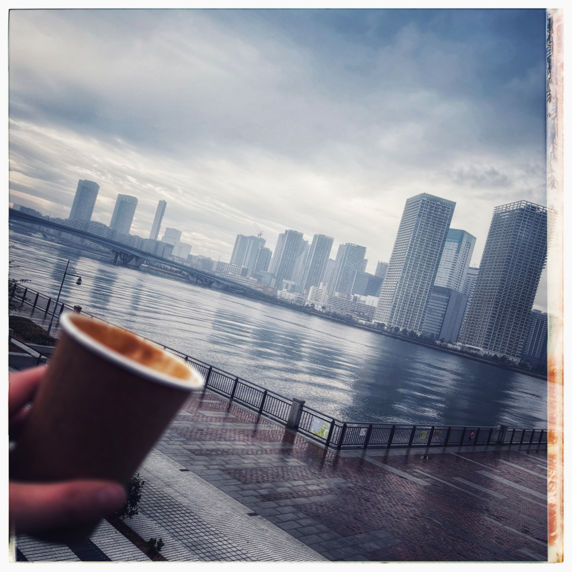 I had breakfast in my room. The night before, I had bought some muesli, as Japanese breakfasts aren't really my thing and are simply too expensive in hotels. Fortified and with my rucksack packed, I went back underground, found the right line and travelled to the Toyosu district (Koto Ward), a modern neighbourhood known for its harbour atmosphere. There is a special museum there called Teamlabs Plans. I had read and been told that visitors should be prepared for water crossings and mirrored floors. Also, the same rule applies here: buy tickets online in advance. Of course, I was early again, so I grabbed a cappuccino to go from a café and strolled along the harbour promenade.