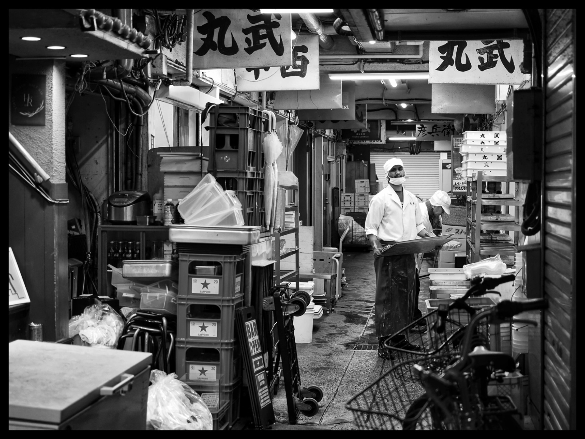 After taking a few photos here, I continued on until I arrived at the Tsukiji Outer Market. It is a lively labyrinth of alleys lined with food stalls, restaurants, and shops selling food and kitchen utensils. Naturally, I grabbed my camera and captured the street life. I lost track of time and was completely in my element.
