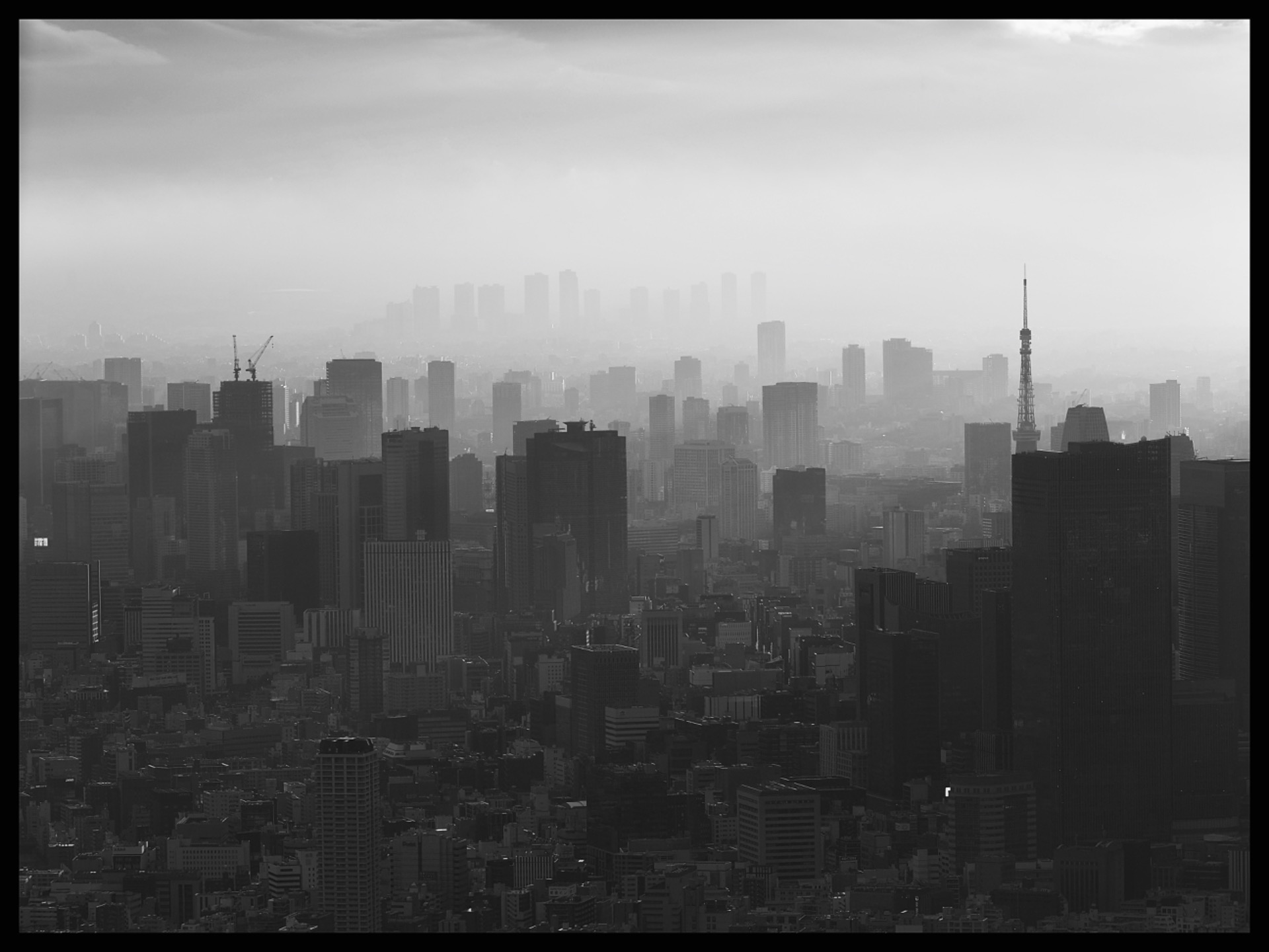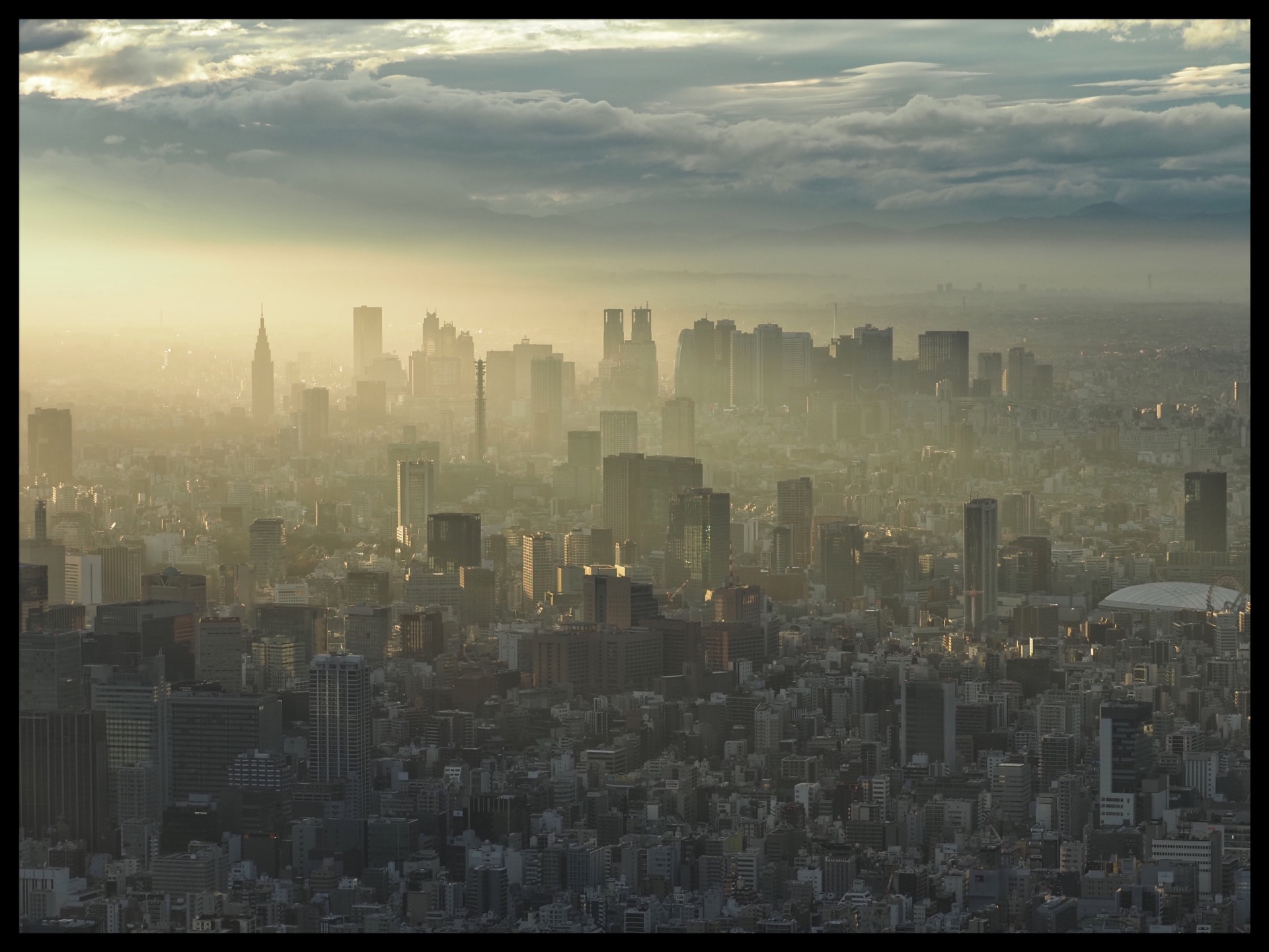 I went up with a few others, and when I arrived at the top, I was a bit disappointed. Everything was covered in glass, there were masses of people, and there wasn't a good view of the famous crossing. But you could clearly see that Tokyo is really, really big and was considered the largest city in the world until last year. Now, Jakarta has taken that title. The weather didn't want to cooperate either, which was a shame.