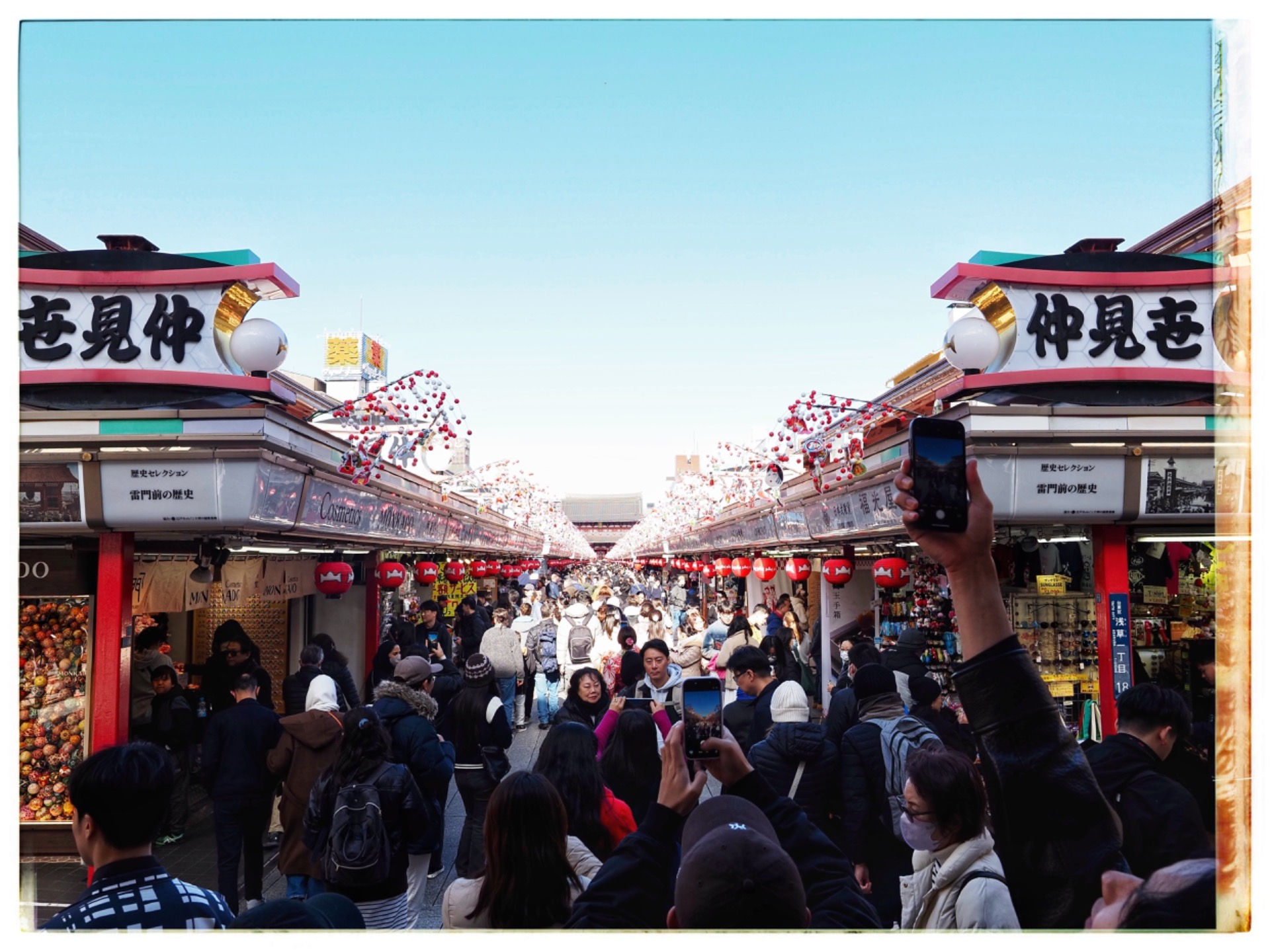 Incidentally, it is the oldest temple in Tokyo and Japan. It is a Shinto shrine where three men are worshipped: two brothers and a village chief who were instrumental in the construction of Sensō-ji. It was pandemonium here, but the weather cooperated. Instead of rain, today there was sunshine and an almost cloudless sky.