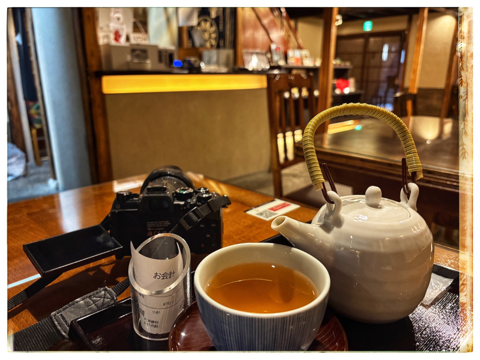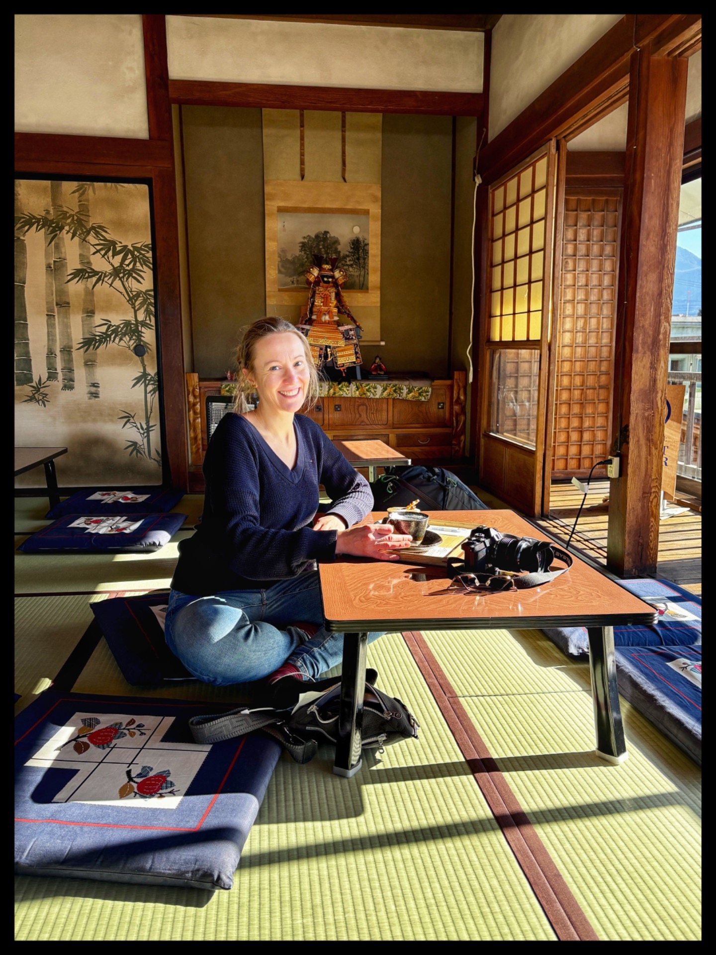 Travelling by bus is really cheap here, and you don't have to wait long for one. I walked through the alleys again, but it was like last night: many shops and restaurants were closed. However, one small café was already open. I went in, drank some Japanese tea and warmed up a little.