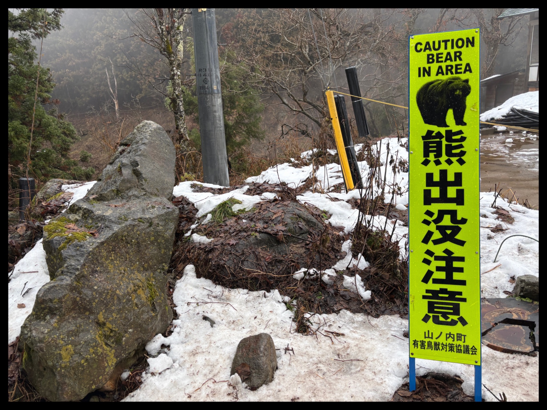 But after three hours, it became too much for me too, and I was soaked through, so I headed back. I looked like a muddy sparrow, my thermal trousers, rain cape and shoes were filthy. I cleaned everything as best I could with snow, then got on the bus and travelled back to Nagano.