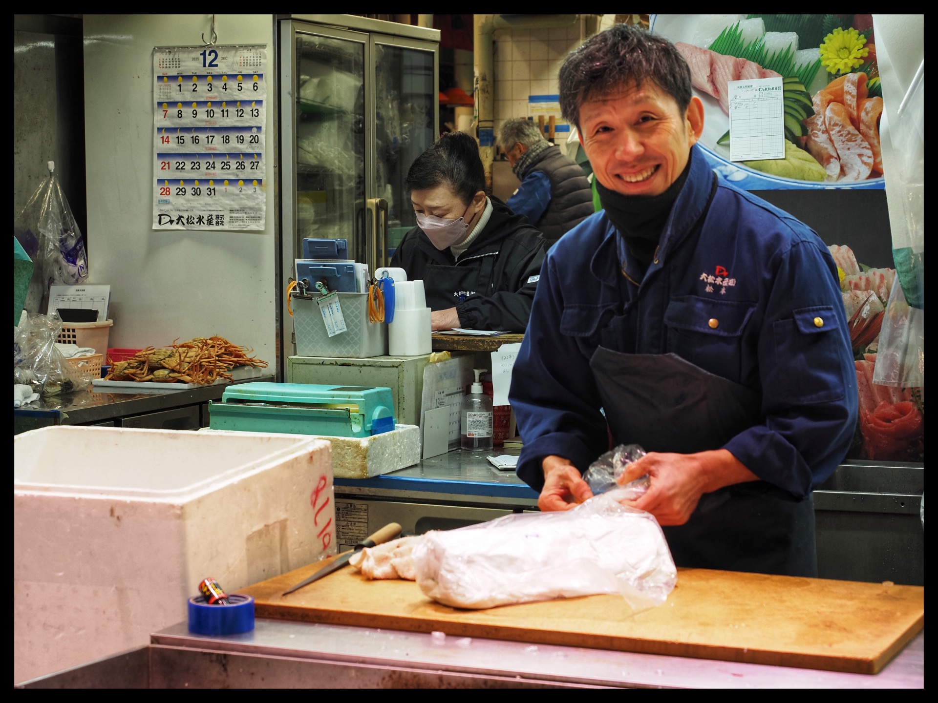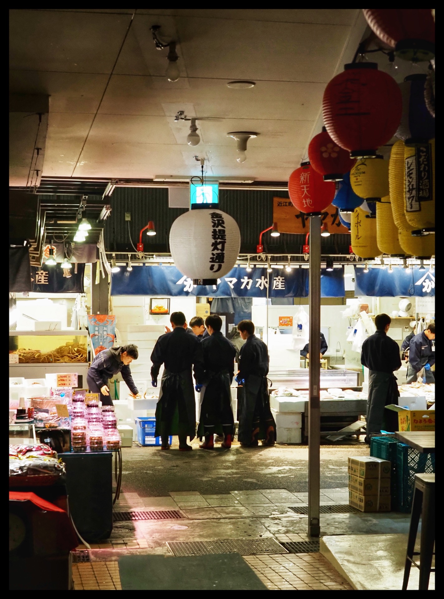 Once that was done, I first went to Omicho Market, but I was actually too early. Some of the stalls were still closed or just being set up. The fresh produce from the sea and the fresh fruit had just been delivered. Most of the stall owners were wearing masks (which isn't exactly ideal for photos), but I was able to take a few shots.