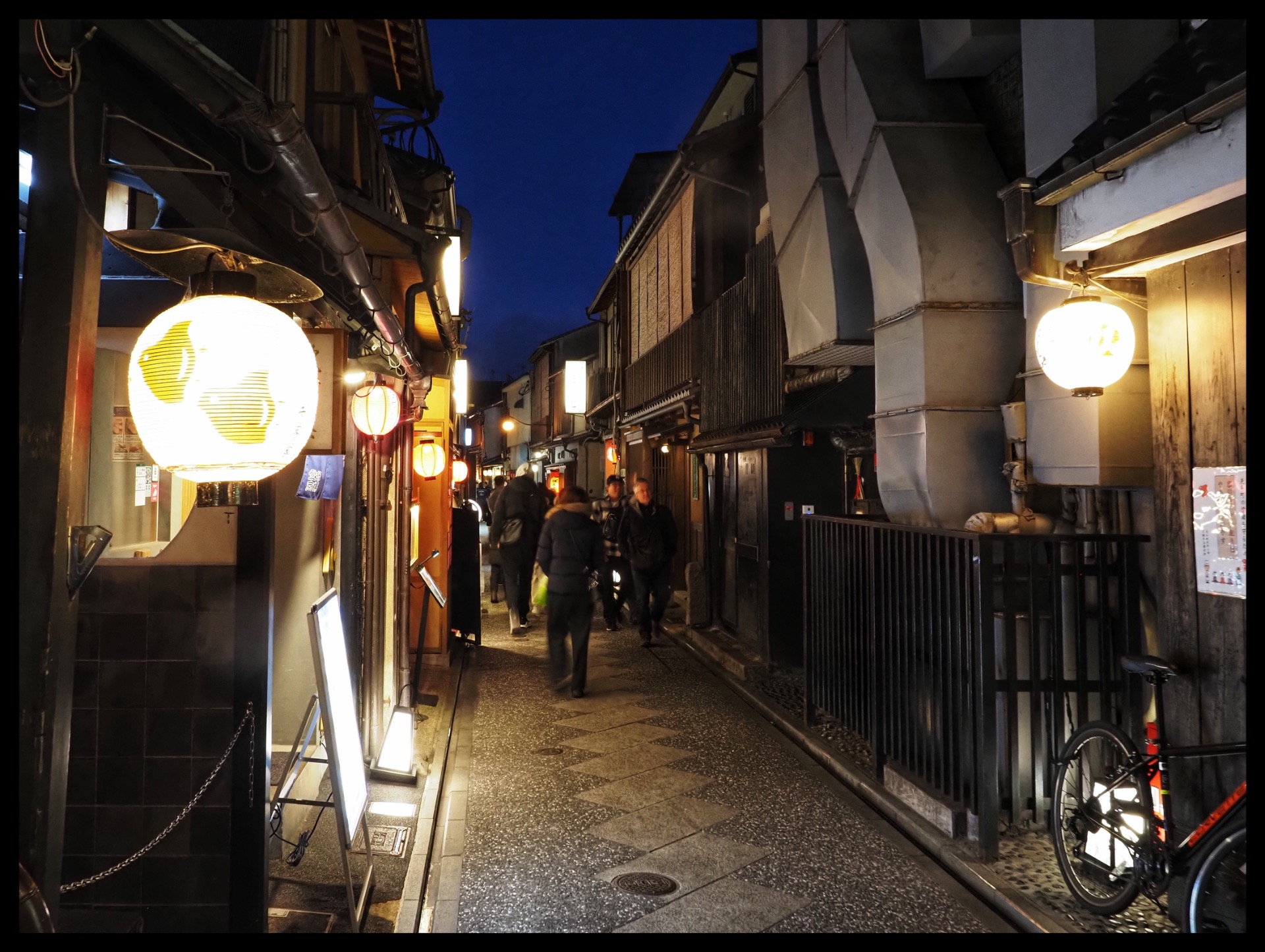 After briefly looking at it, I walked to Pontocho Alley, which is only a few minutes away on foot. This historic, narrow street in Kyoto runs alongside the Kamo River and is known for its cosy restaurants, old wooden buildings and proximity to the geisha district. I walked up and down it once and found a very small Japanese restaurant that also offers vegetarian dishes.