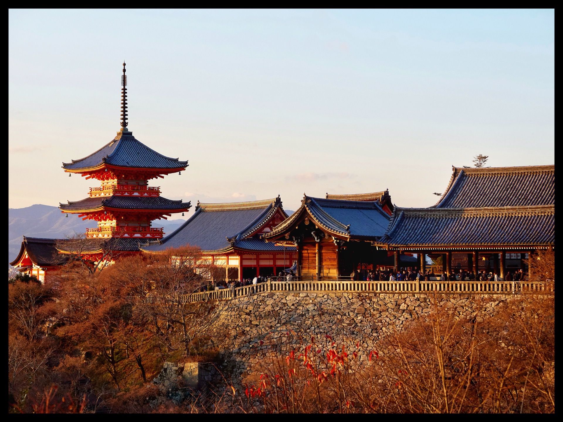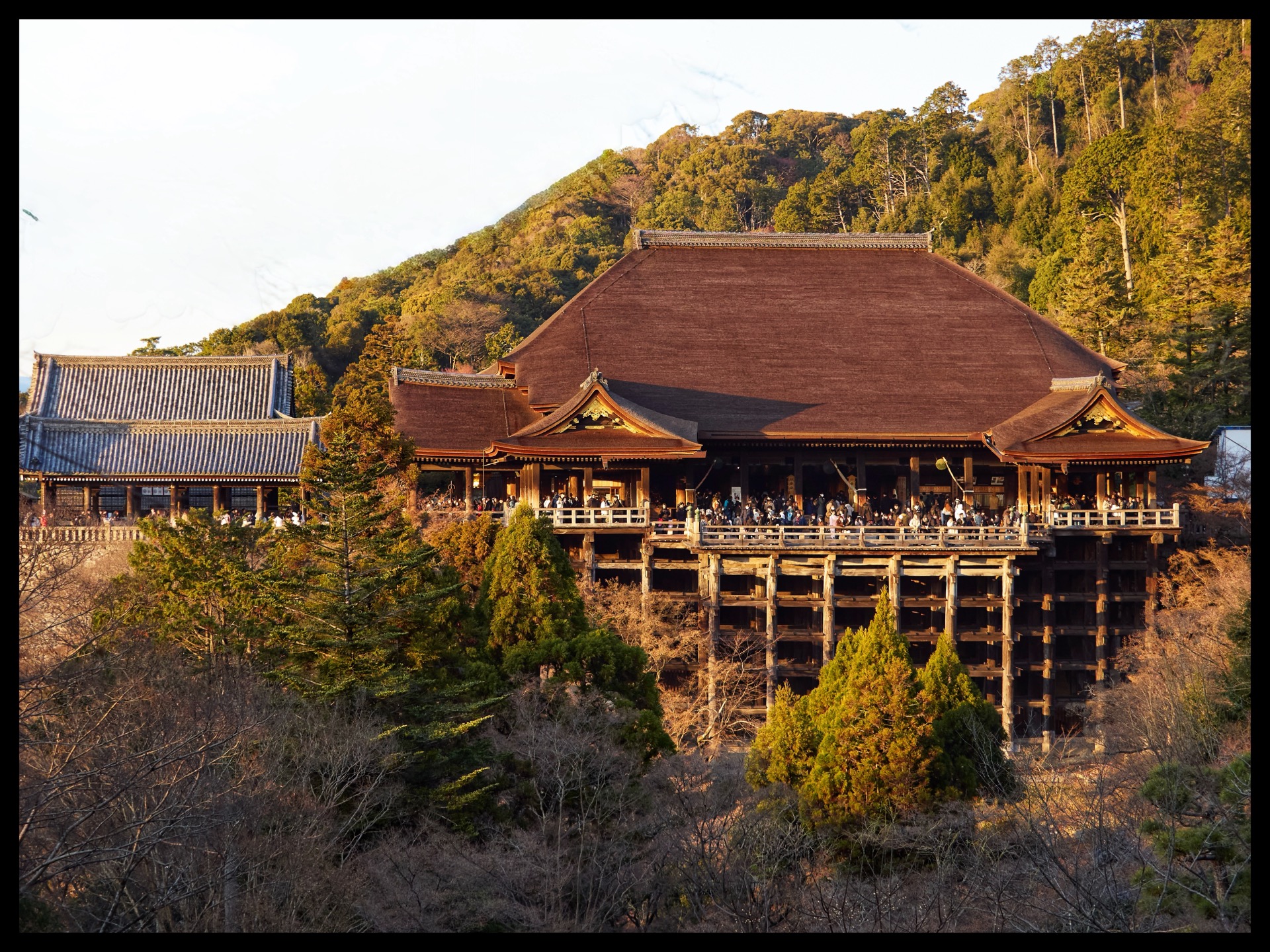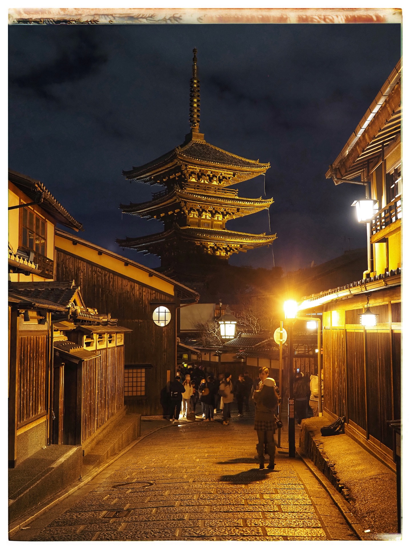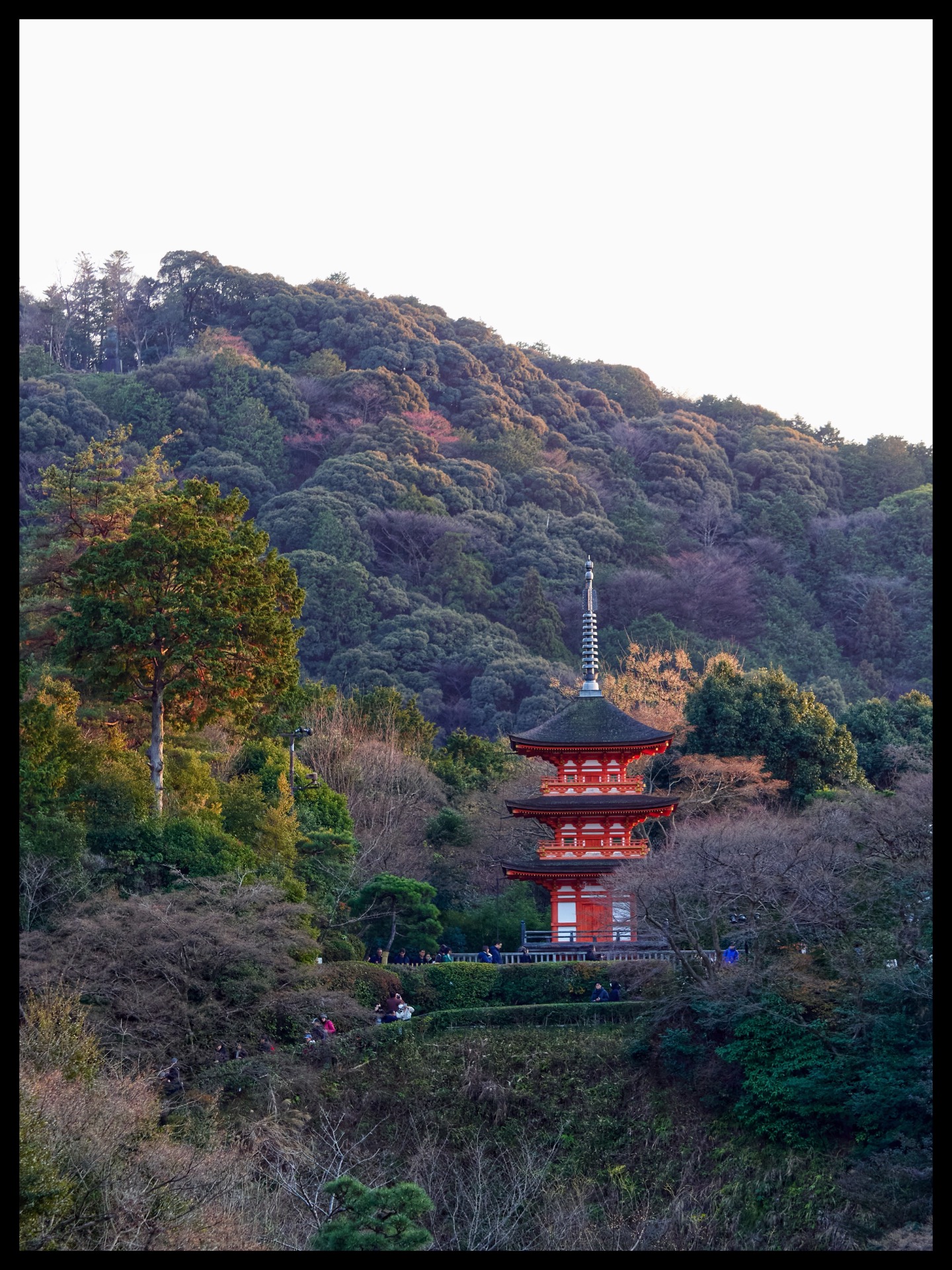 Back in Kyoto, I took the 205 city bus through the geisha district and up the narrow streets to Kiyomizu-dera Temple. The name Kiyomizu-dera refers to several Buddhist temple complexes, but it usually refers to Otowasan Kiyomizu-dera in eastern Kyoto, which is one of the city's most famous attractions. Together with other historical sites, the temple was added to the UNESCO World Heritage List 'Historic Kyoto' in 1994. From up here, you have a magnificent view of Kyoto. And I caught the sunset. Unfortunately, it was pandemonium. On the way back, I stroll through new alleys in the district that I hadn't explored yesterday.
