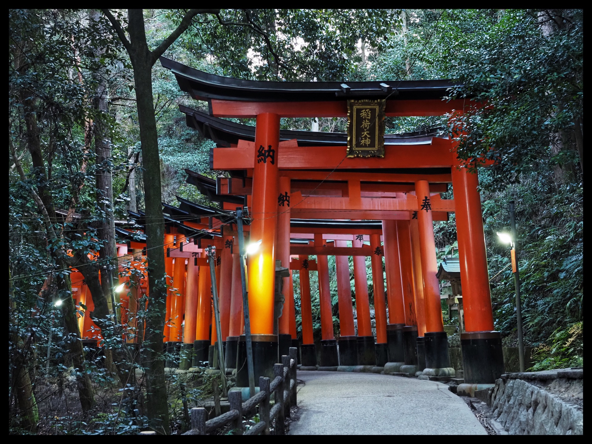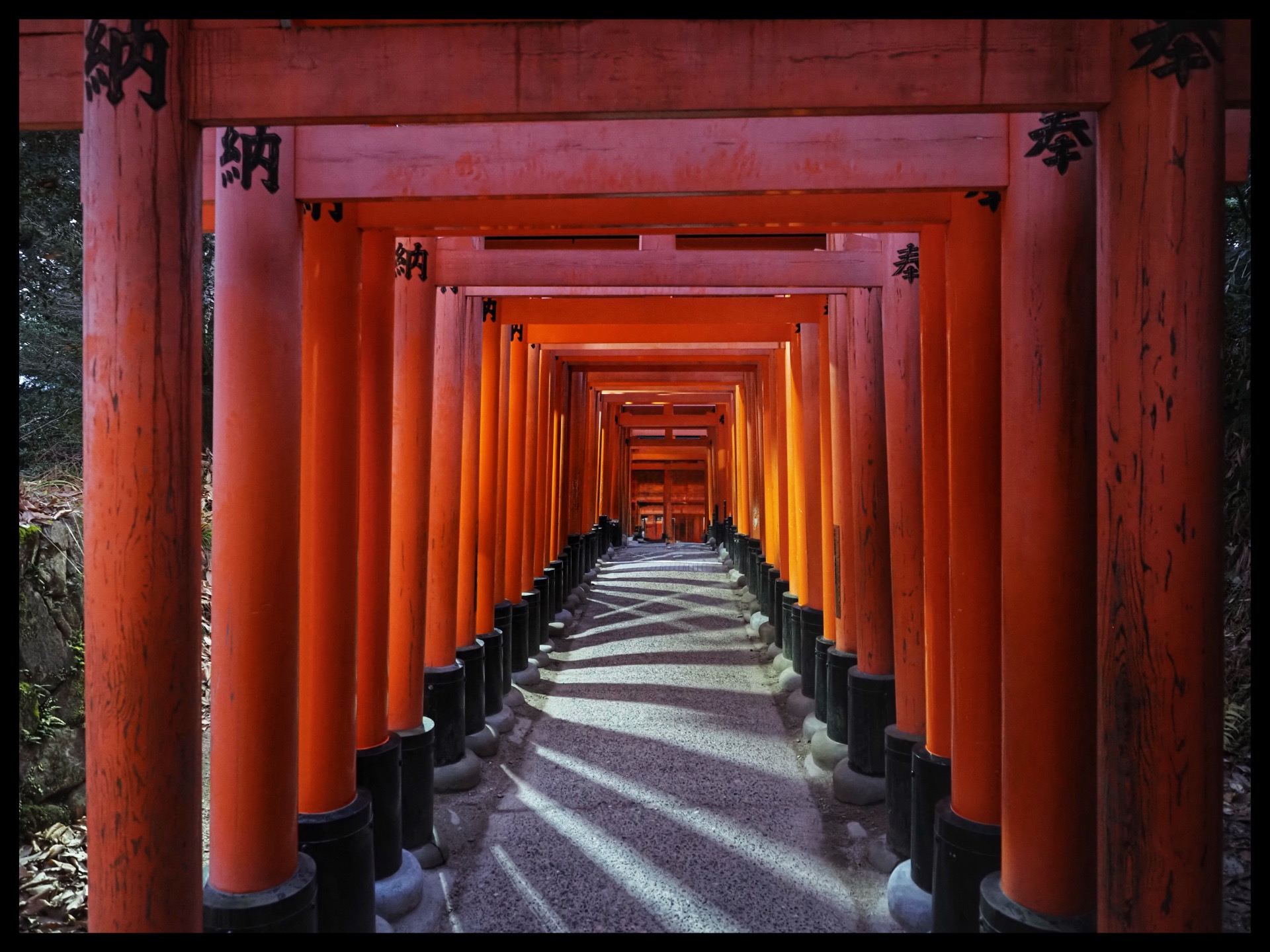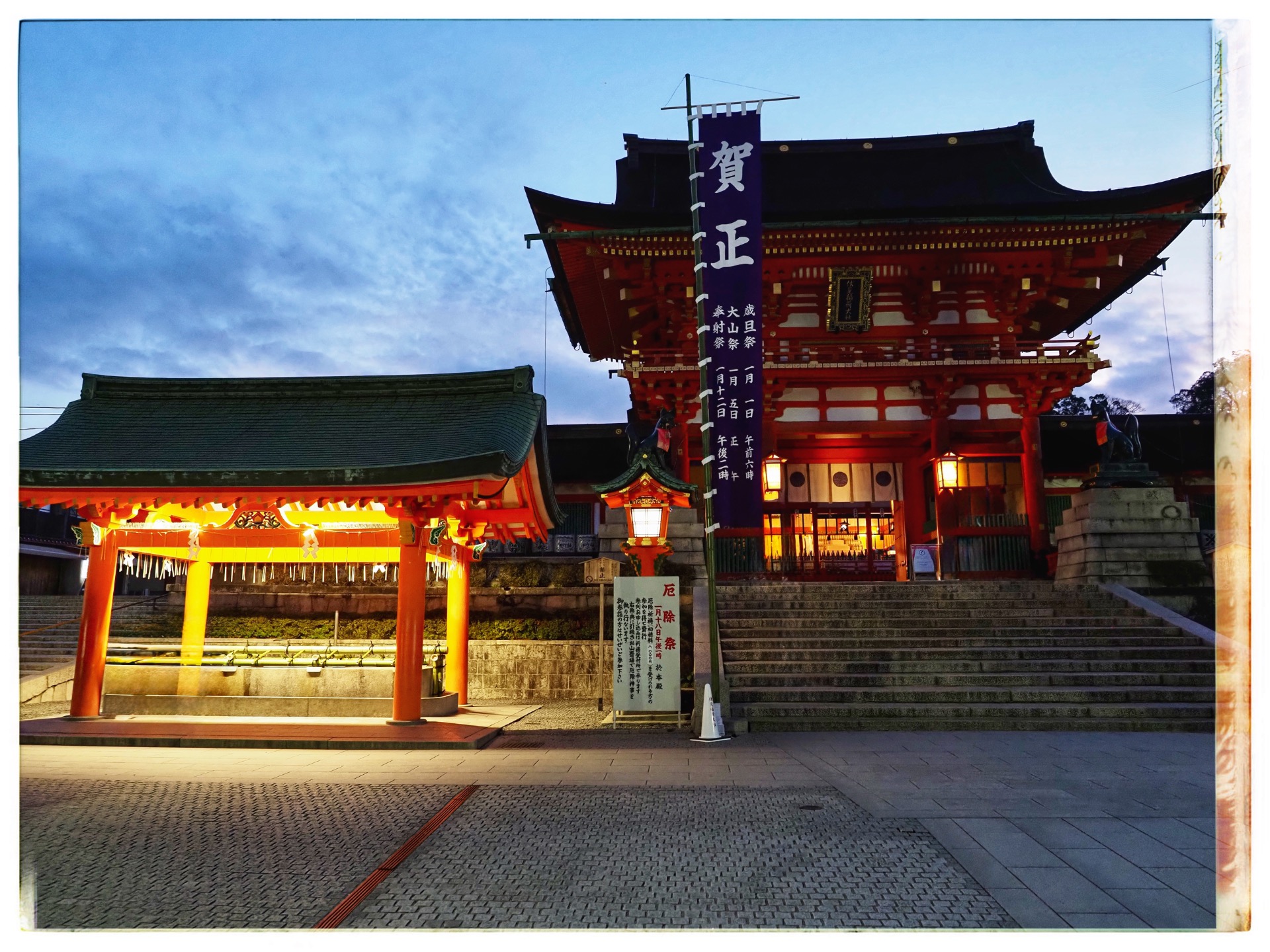 I set off on my morning mission while it was still dark. My goal was to take photographs in peace and quiet, without any people around. So I went to Gion-Shijo Station and took the train to Fushimi Inari-Taisha.