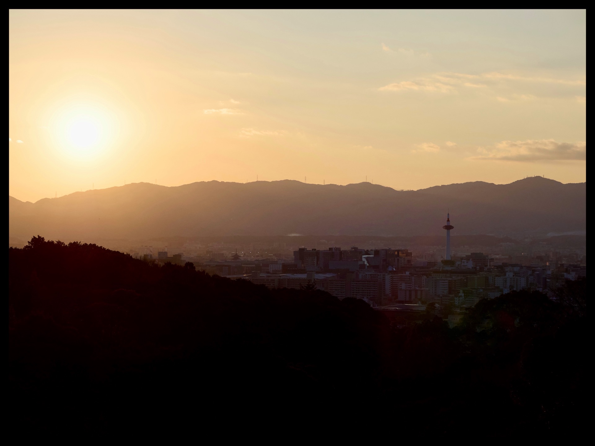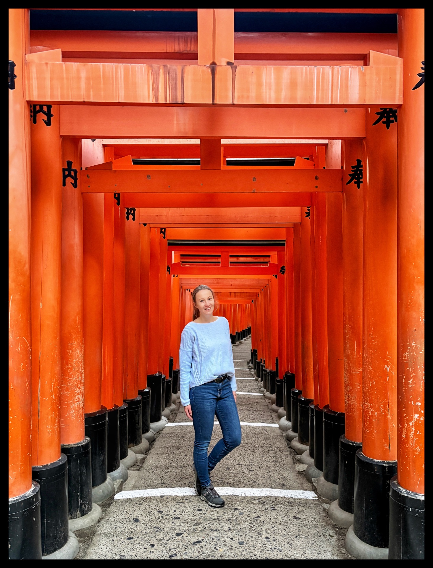 This is a Shinto shrine in the Fushimi district in the south of Kyoto. It is dedicated to the goddess Inari and is considered the main shrine for around a third of all Inari shrines in Japan. This makes it one of the oldest and best-known Shinto shrines in the city. The complex is particularly famous for its long paths lined with thousands of bright orange torii gates, which were erected as donations from individuals, families or companies. These torii corridors lead up a hill, at the top of which – rather unusually for a Shinto shrine – is the inner sanctum, a mirror that is visible to the public. I wasn't really alone. Some others had had the same idea. But it was within reason. Unfortunately, it didn't work out well with the sunrise and playing with light and shadow, as it was still relatively dark. But I was able to take a few shots, and I climbed all the steps up to the viewpoint. Here I enjoyed the view of the valley and Kyoto.