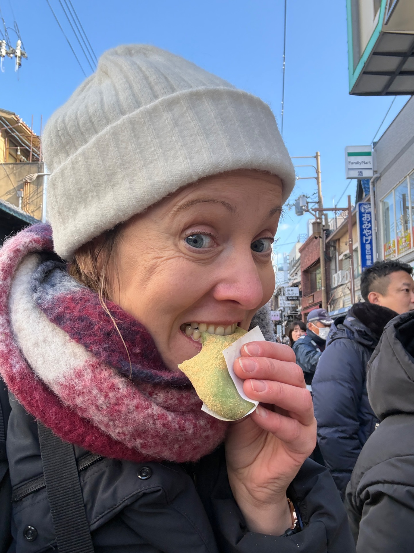 Before heading back, I wandered through the alleys and had an experience I will never forget. I bought a typical Japanese mochi rice cake filled with bean paste. Customers can even watch it being made. It's quite an experience, because the dough is beaten with wooden sticks and hands while shouting.
