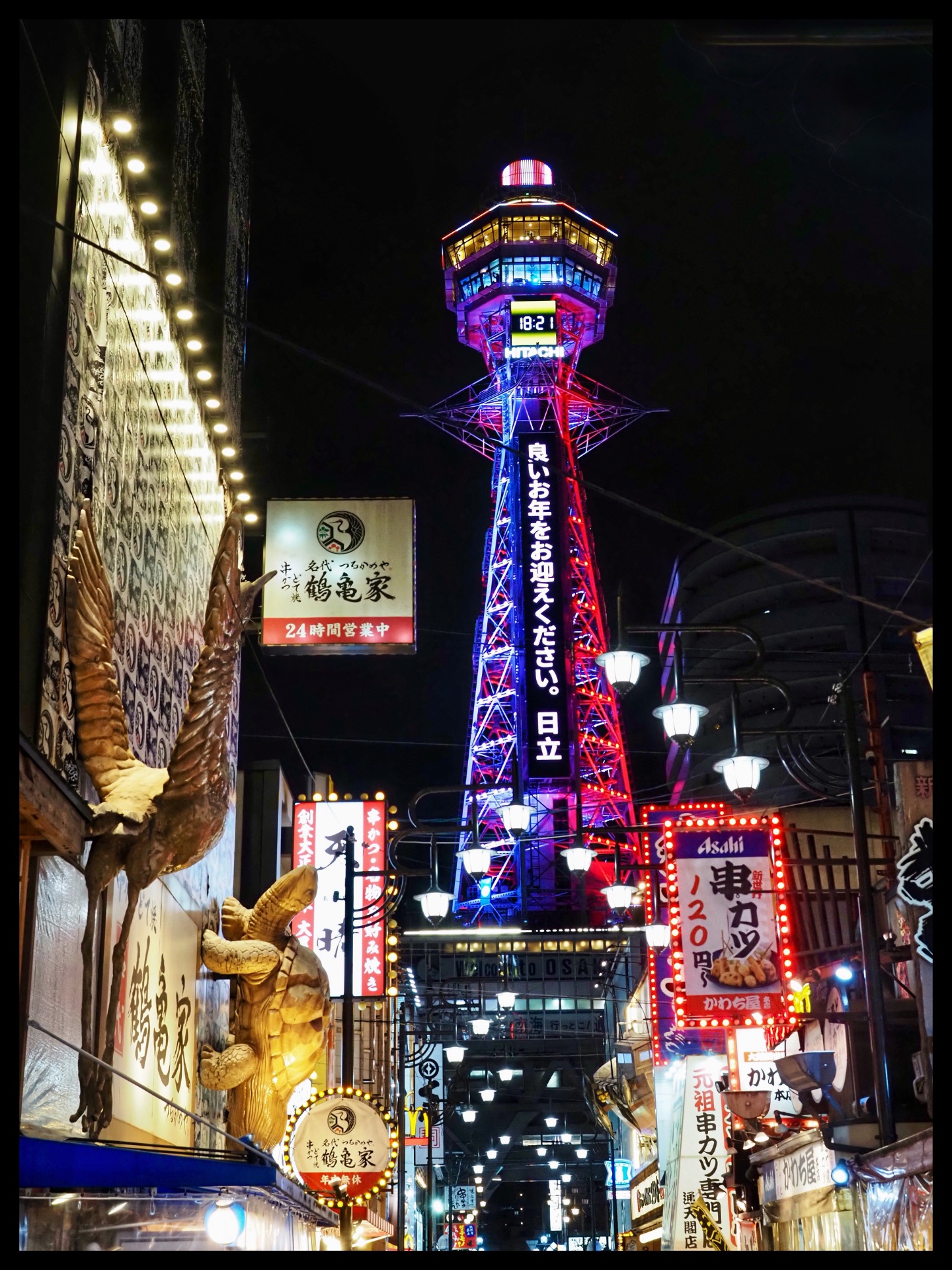 All hell had broken loose on the streets there. It was like a fairground. After taking a few photos and soaking up the atmosphere, I quickly left this area and travelled two stops back to the well-known entertainment district of Dotonbori. Here, the crowds were a little more spread out.