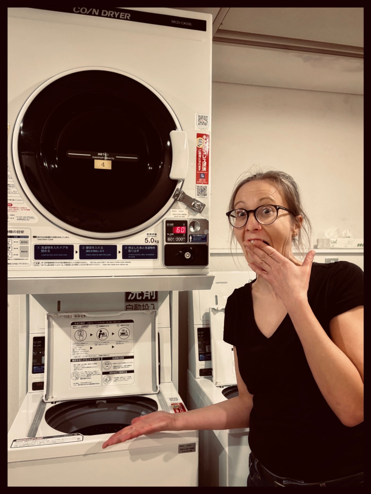 And I tried my hand at using a Japanese washing machine and dryer. All you have to do is put the laundry in, insert the coins, and off you go. The detergent and temperature are all automatic. I was a little nervous about whether it would work, but the result was satisfactory.