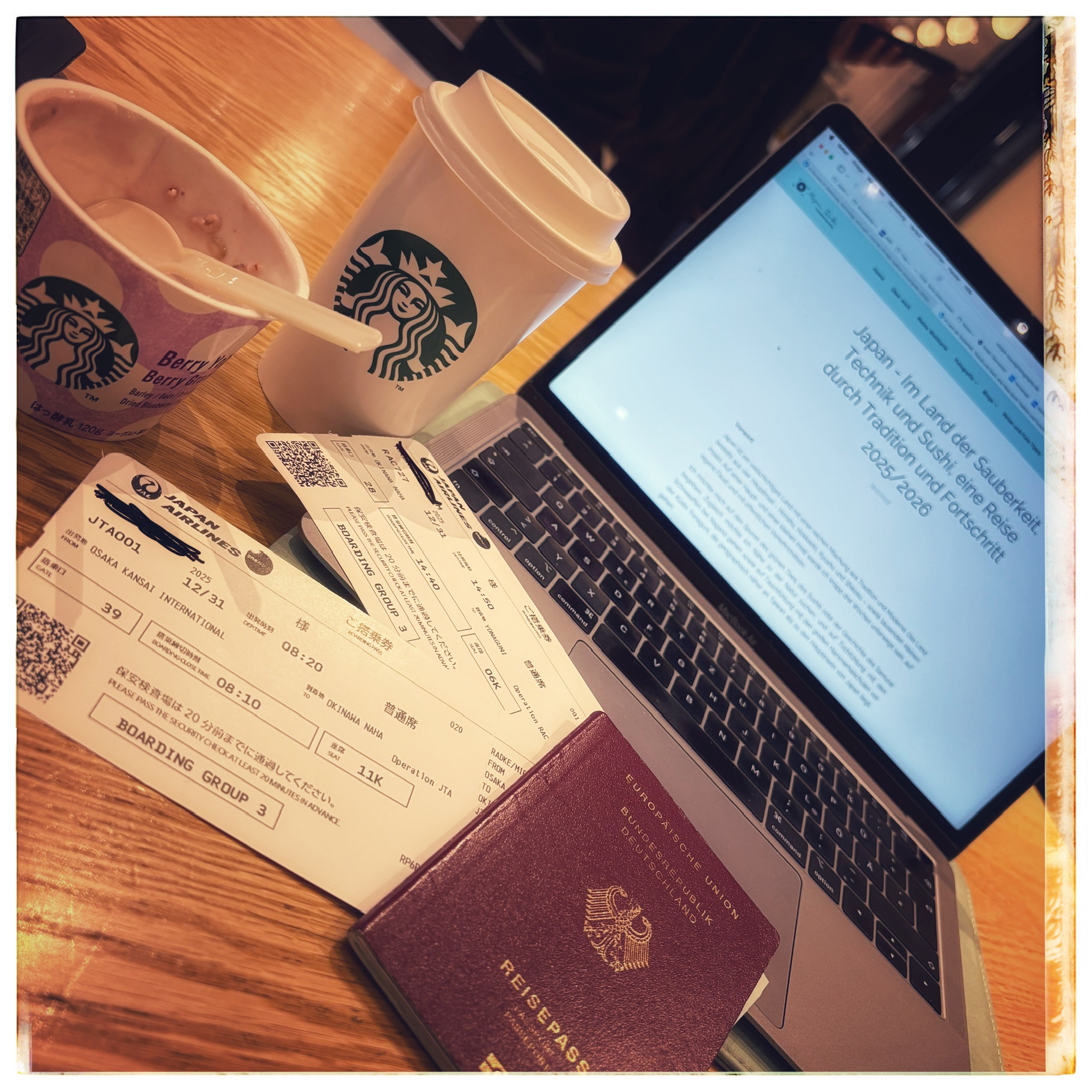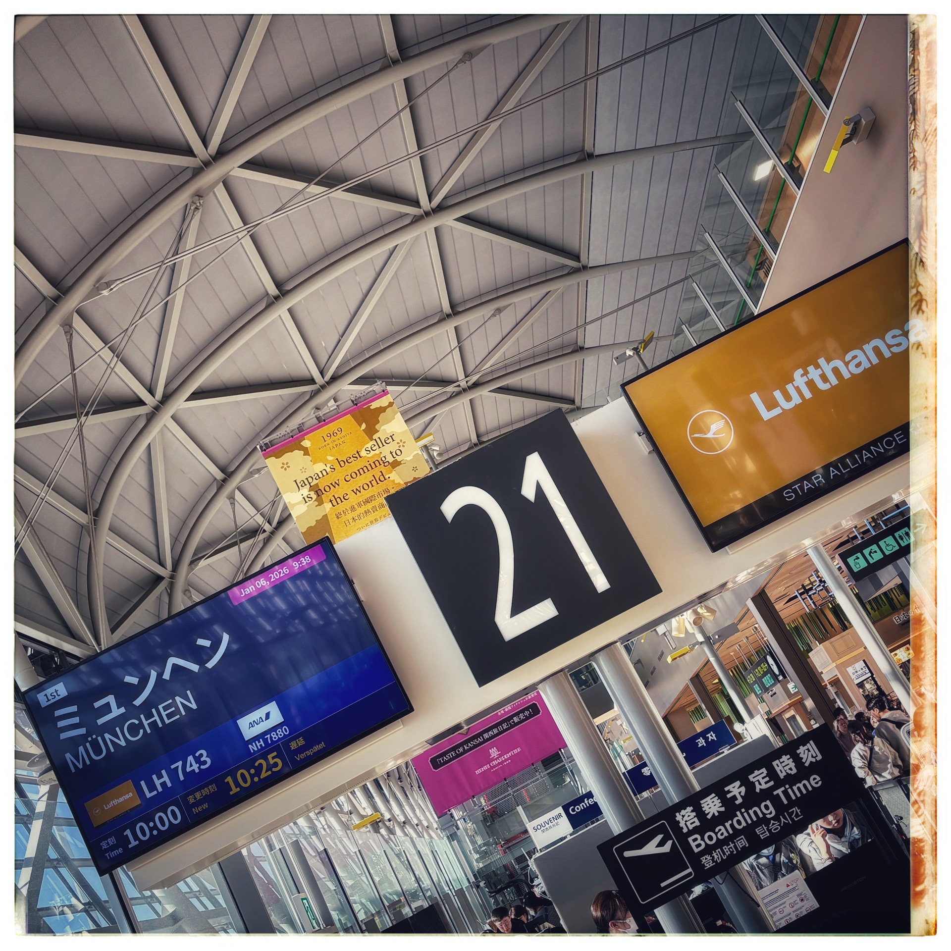 In Okinawa, I spent the waiting time in a café before heading to my gate an hour before departure.But then my flight was no longer listed on the departure board. I asked about it, and they tried to explain to me that it was delayed by an hour and a half. I asked for compensation and received a meal voucher worth 1,000 yen, which I redeemed at a restaurant. But then my flight was no longer listed on the departure board. I asked about it, and they tried to explain to me that it was delayed by an hour and a half. I asked for compensation and received a meal voucher worth 1,000 yen, which I redeemed at a restaurant.
