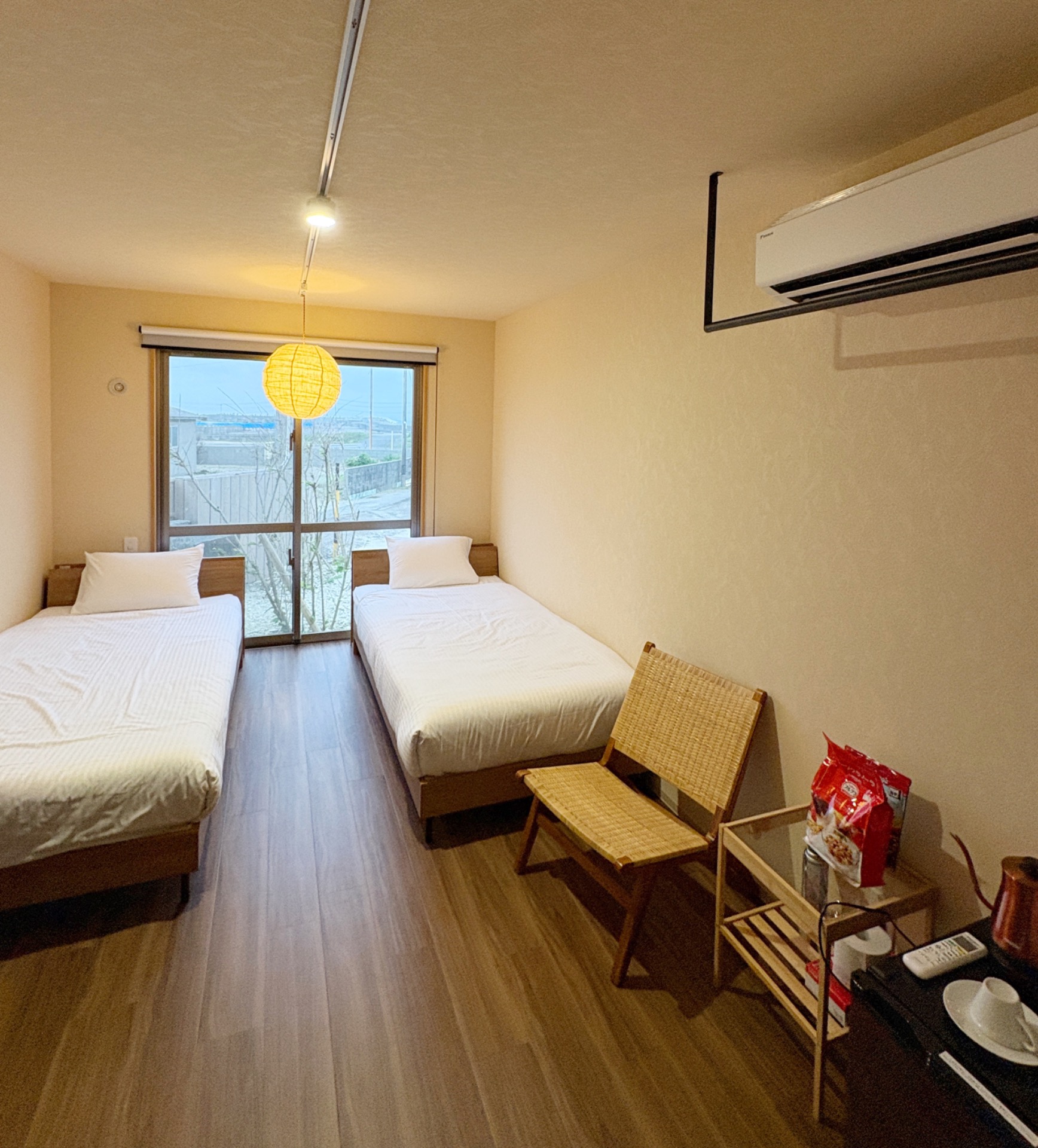 I was picked up from the hotel and check-in was a little complicated because the staff spoke little to no English, and when they did, it was very difficult to understand. But thanks to Google Translate, everything was sorted out. Ayumi, an employee, drove me to two supermarkets so I could get my muesli and fresh fruit for breakfast. On the way, she explained to me that the road around the island is 25 km long and that only 1,700 Japanese people live here, 700 of whom belong to the Japanese military.