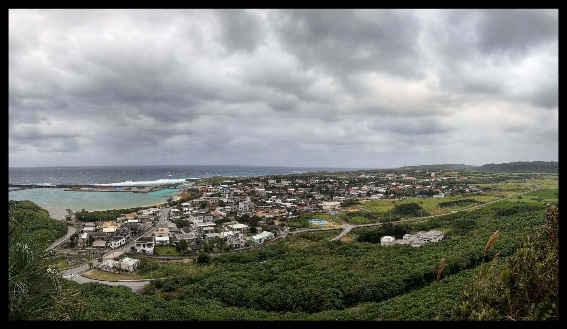 After returning, we took showers and had lunch together at the dive center's own restaurant. Afterwards, Riku—another dive instructor with whom I had already exchanged photos and talked about diving via Instagram—drove me back and also gave me a photography tip for the surrounding area. I grabbed my camera and headed out, despite the wind and rain. After about 22 minutes, I climbed up to the viewpoint "Tinda Bana." From there, I could look out over the town of "Sonai" and the sea.