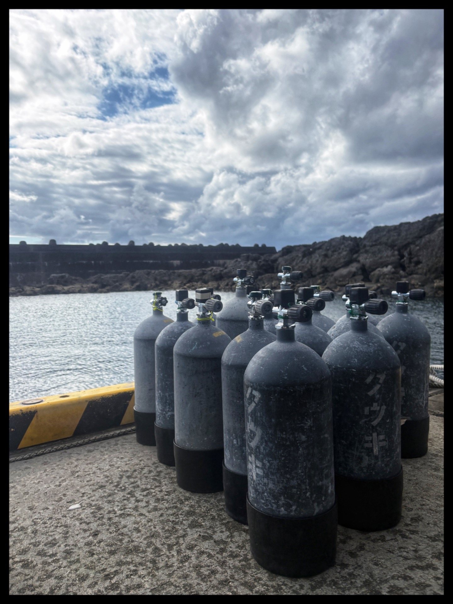 Today, I was picked up on time again for the dive. Unfortunately, the weather hadn't improved; it had actually become stormier. Still, we got ready to dive. Riku, my dive instructor for the day, did the briefing for me and three Americans using Google Translate. The other four Japanese divers had it easier.
