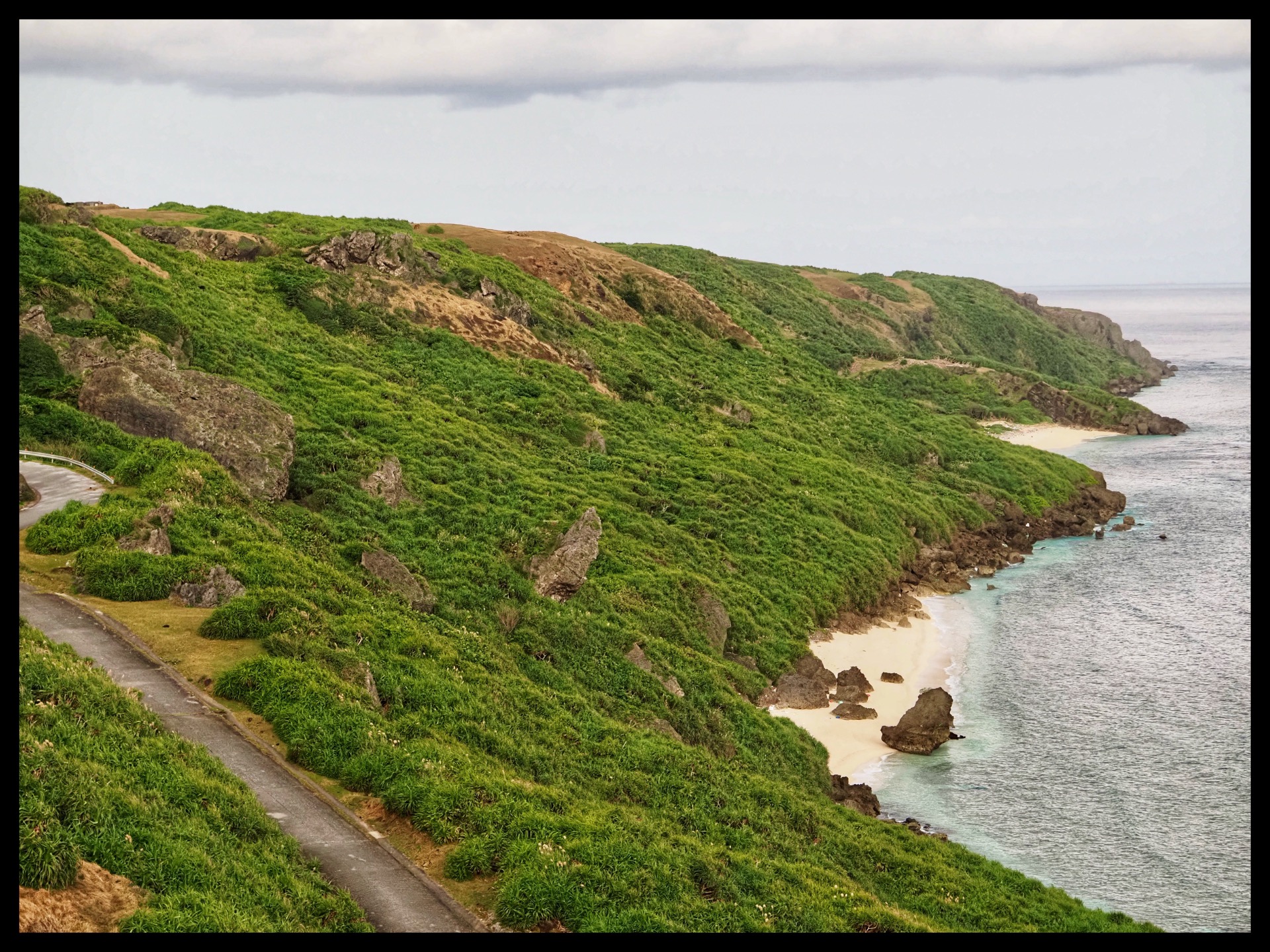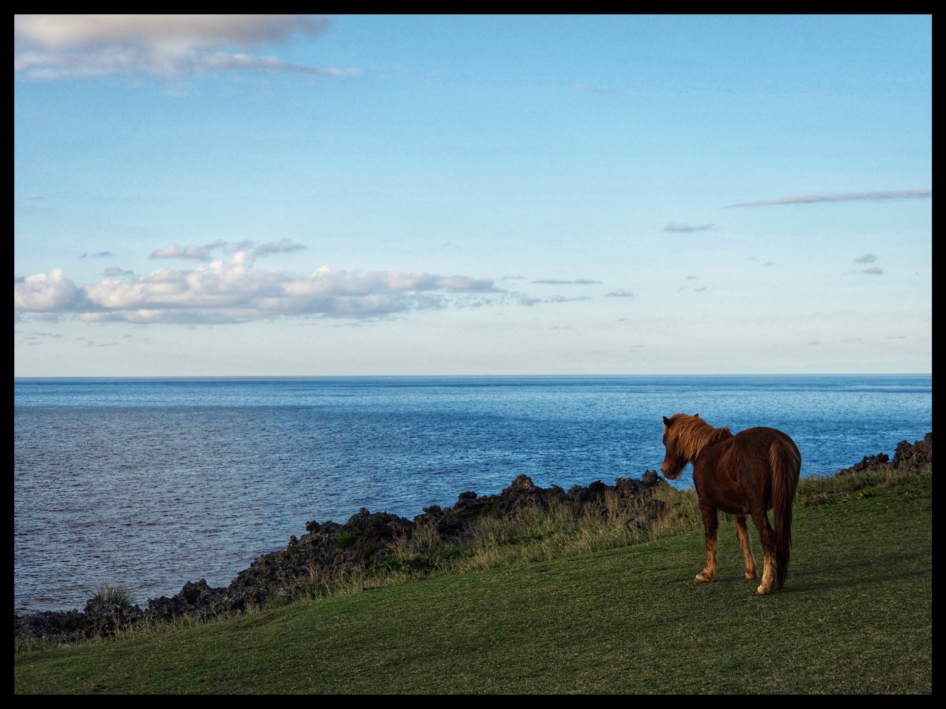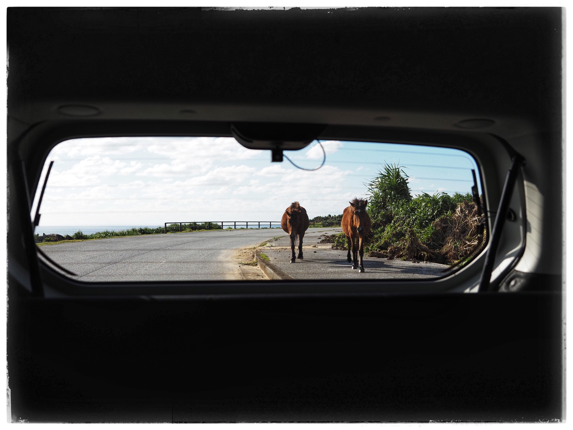 Even though traffic drives on the left here, it was easy, as there wasn't much going on on the roads. The only potential danger came from the free-roaming Yonaguni ponies. The Yonaguni pony is an endangered Japanese small horse breed. However, they were neither interested in cars nor in people. Seeing such content, free-roaming horses was wonderful.